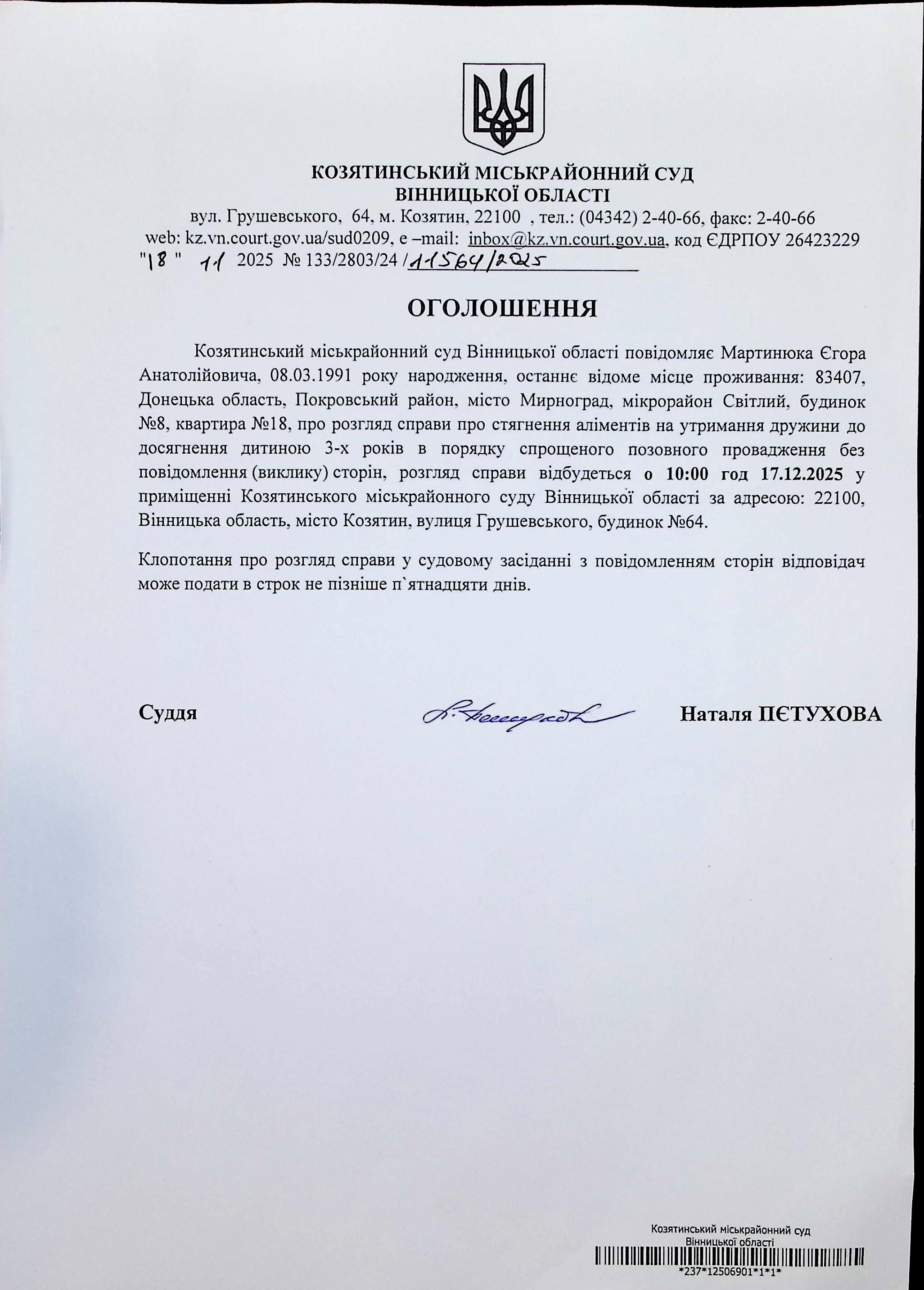 ОГОЛОШЕННЯ Мартинюка Є.А.
