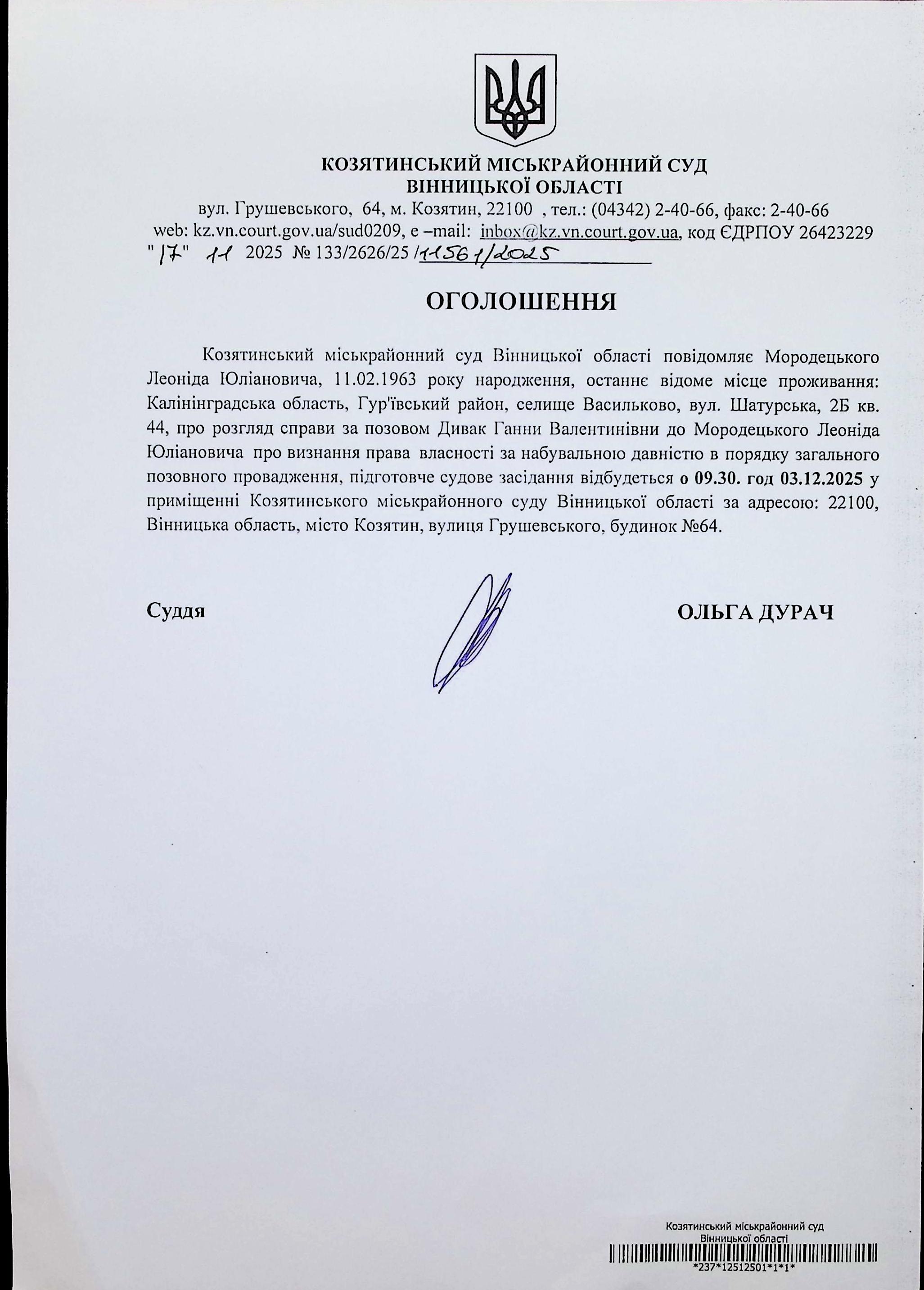 ОГОЛОШЕННЯ для МОРОДЕЦЬКОГО ЛЕОНІДА ЮЛІАНОВИЧА